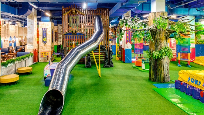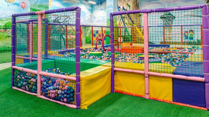 Маленьким любителям экстрима придется по вкусу игрушечная паутина, тарзанка, прыжки с высоты на пневматическую подушку и аттракцион «Сумасшедшие горки». Мальчики и девочки, предпочитающие развлечения другого формата, могут поиграть в настольный хоккей, поплавать в сухом бассейне, попрыгать в поролоновой яме или пострелять из воздушных пулеметов и пушек.